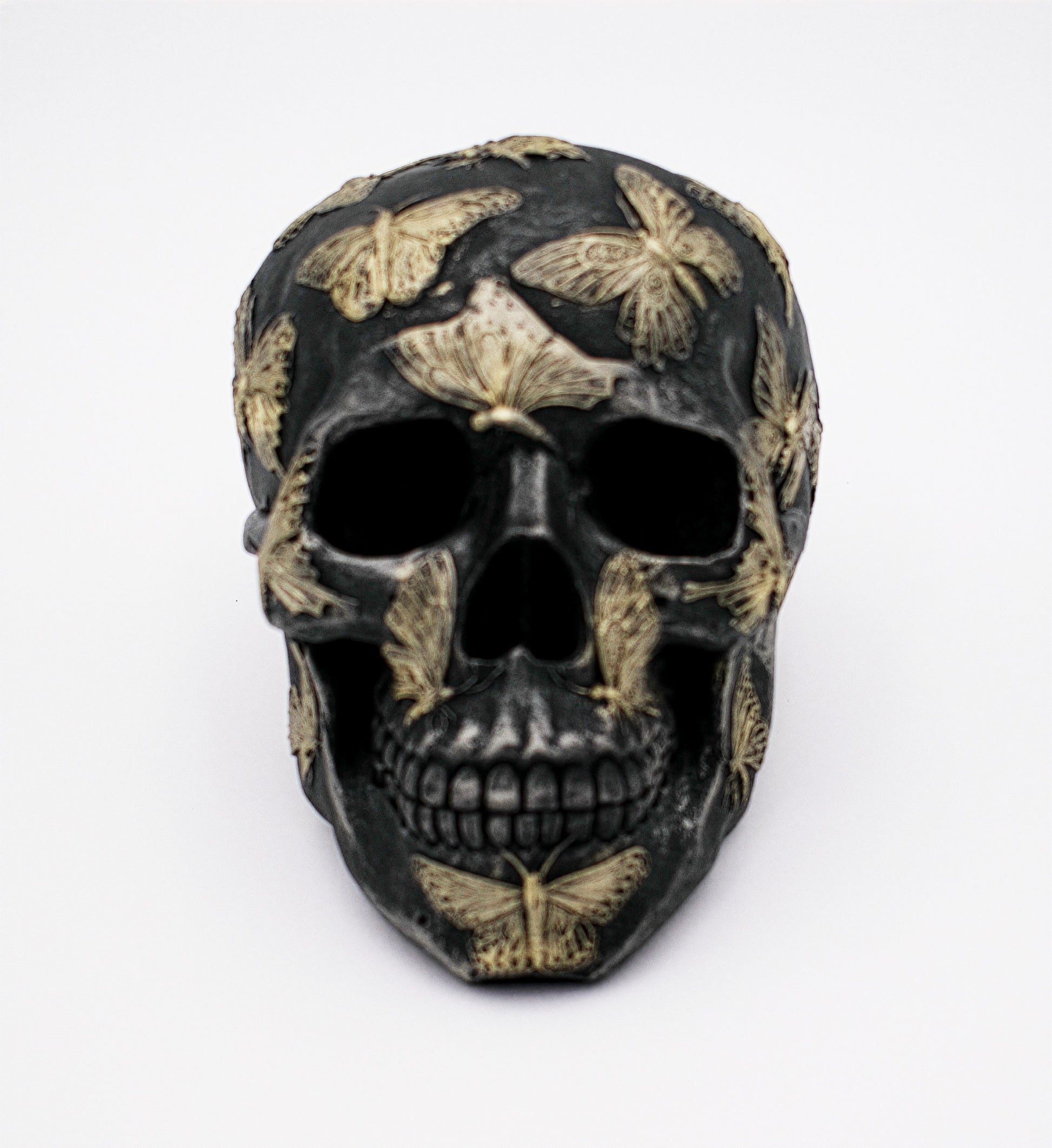 Butterfly Design Skull Sculpture