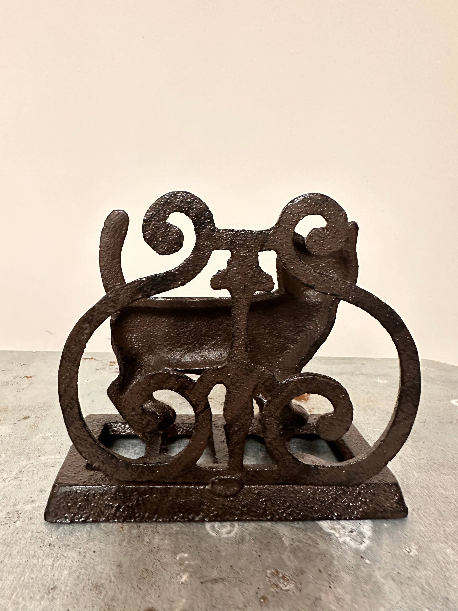 Designed specifically for cat lovers, the Rustic Cast Iron Cat Napkin Holder combines practicality with charming design. Made from robust cast iron, it offers exceptional durability and stability thanks to its heavy, tipping-resistant base. Its versatile open-ended form allows it to hold a wide range of napkin sizes, from petite cocktail napkins to large dinner napkins, while also fitting plastic or paper plates comfortably. This multifunctional piece extends its utility beyond the dining table, providing an elegant storage solution for oven mitts or doubling as an organizer for mail and office supplies, seamlessly blending function and decorative appeal.