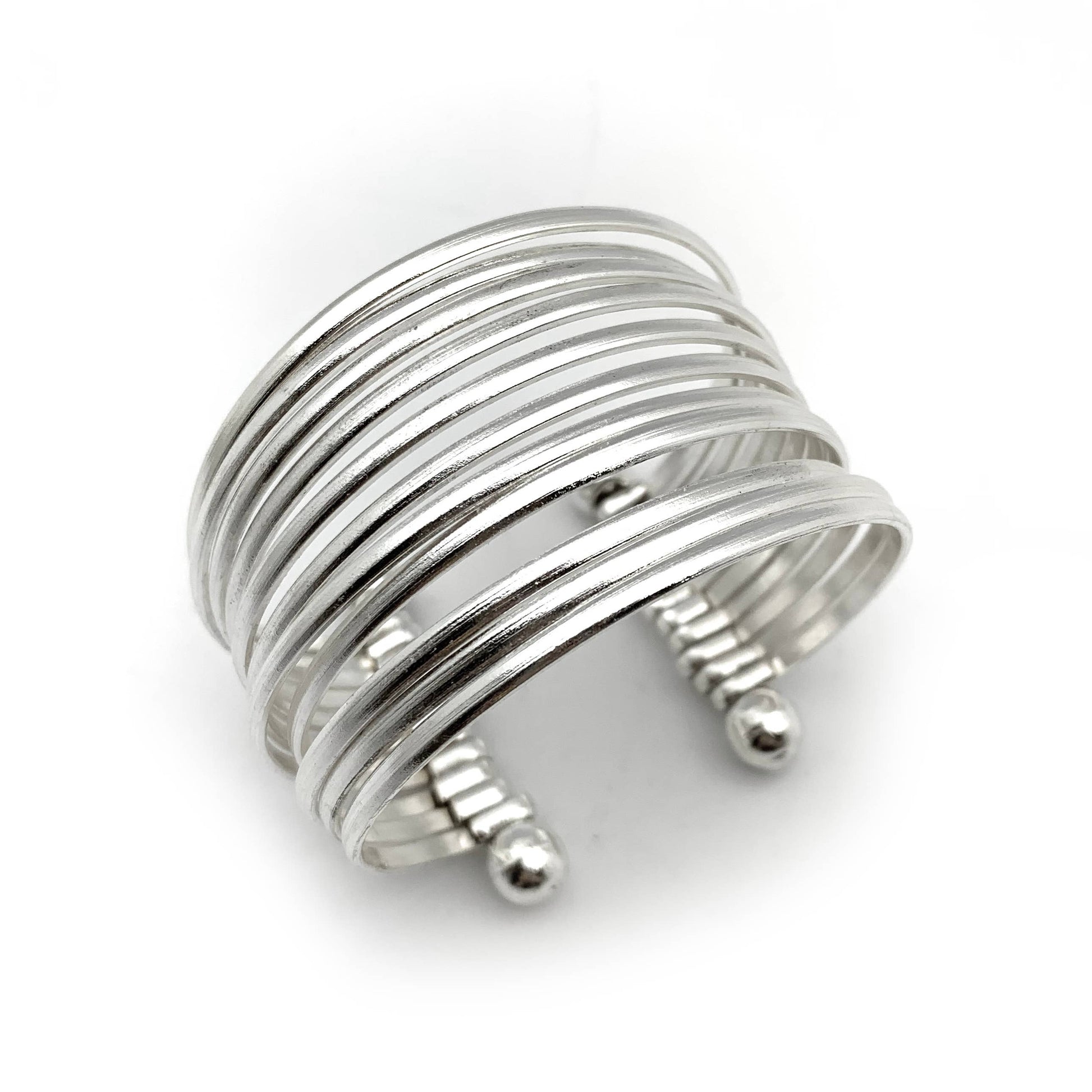 Silver Plated Smooth Bands Adjustable Cuff Bracelet