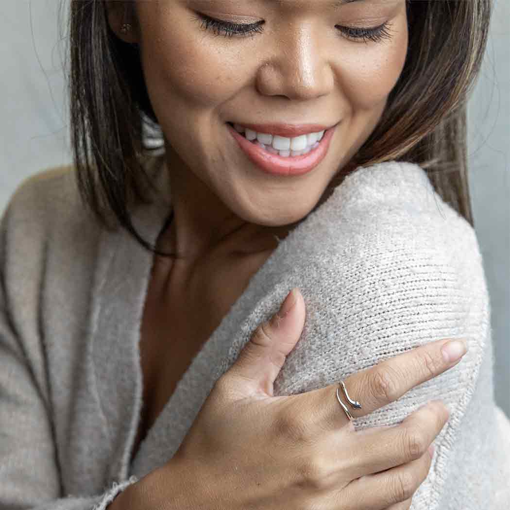 Crafted in sterling silver, this adjustable snake ring embodies understated elegance with its slender, refined silhouette. The serpent motif carries profound symbolism—traditionally representing transformation and the threshold between worlds. Wearing this piece serves as a reminder that reinvention is perpetual and change inevitable. With its subtle mystique and refined aesthetic, it transcends seasonal wear, making it equally compelling for Halloween celebrations or everyday adornment. Available from size 7 with adjustable sizing. For longevity, we recommend setting the ring to your preferred fit and minimizing repeated adjustments, as frequent opening and closing may compromise the band's integrity.
